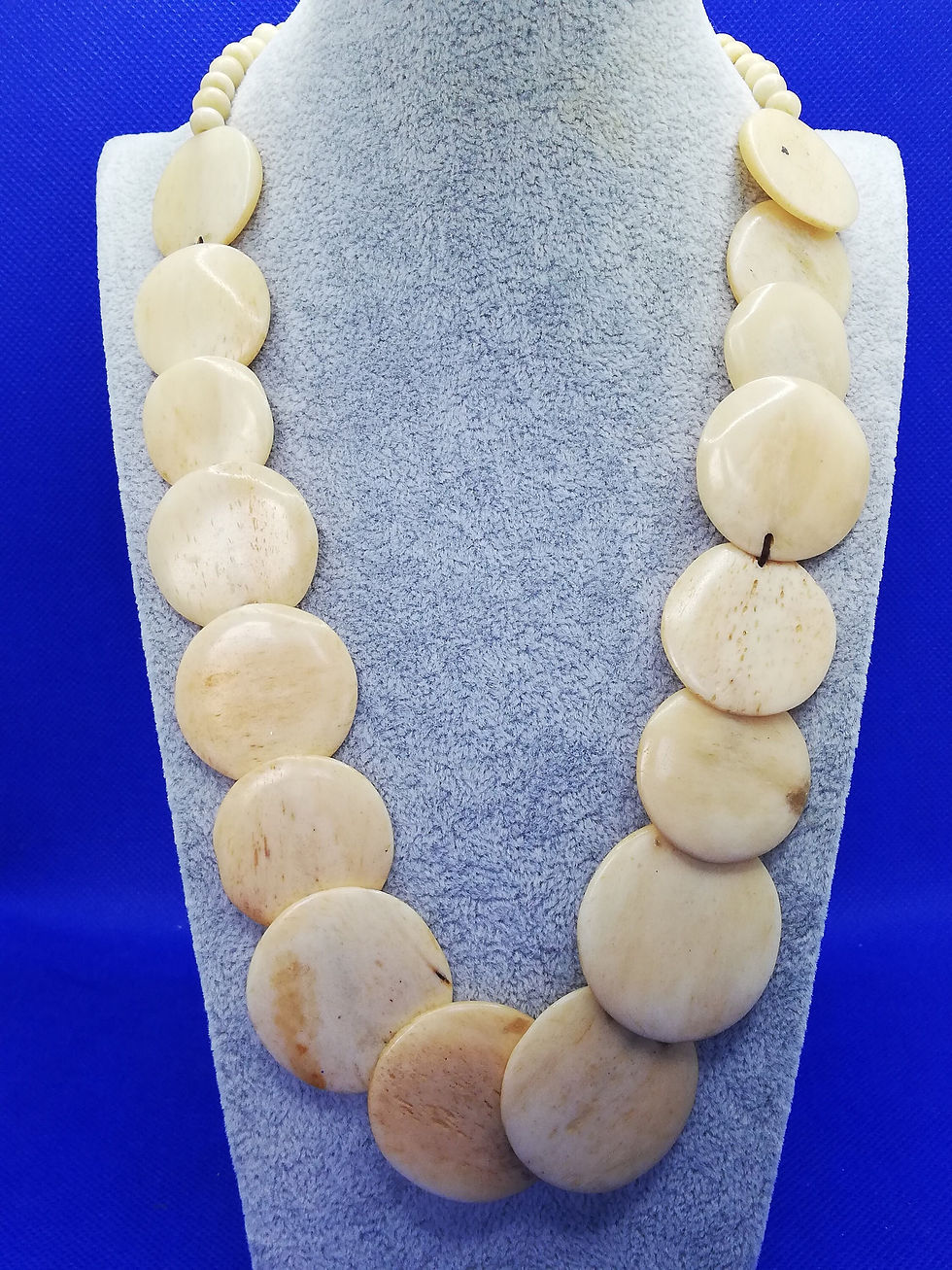 Vintage Polished Graduated Carved Bone Disc Necklace (Non Vegan Friendly)